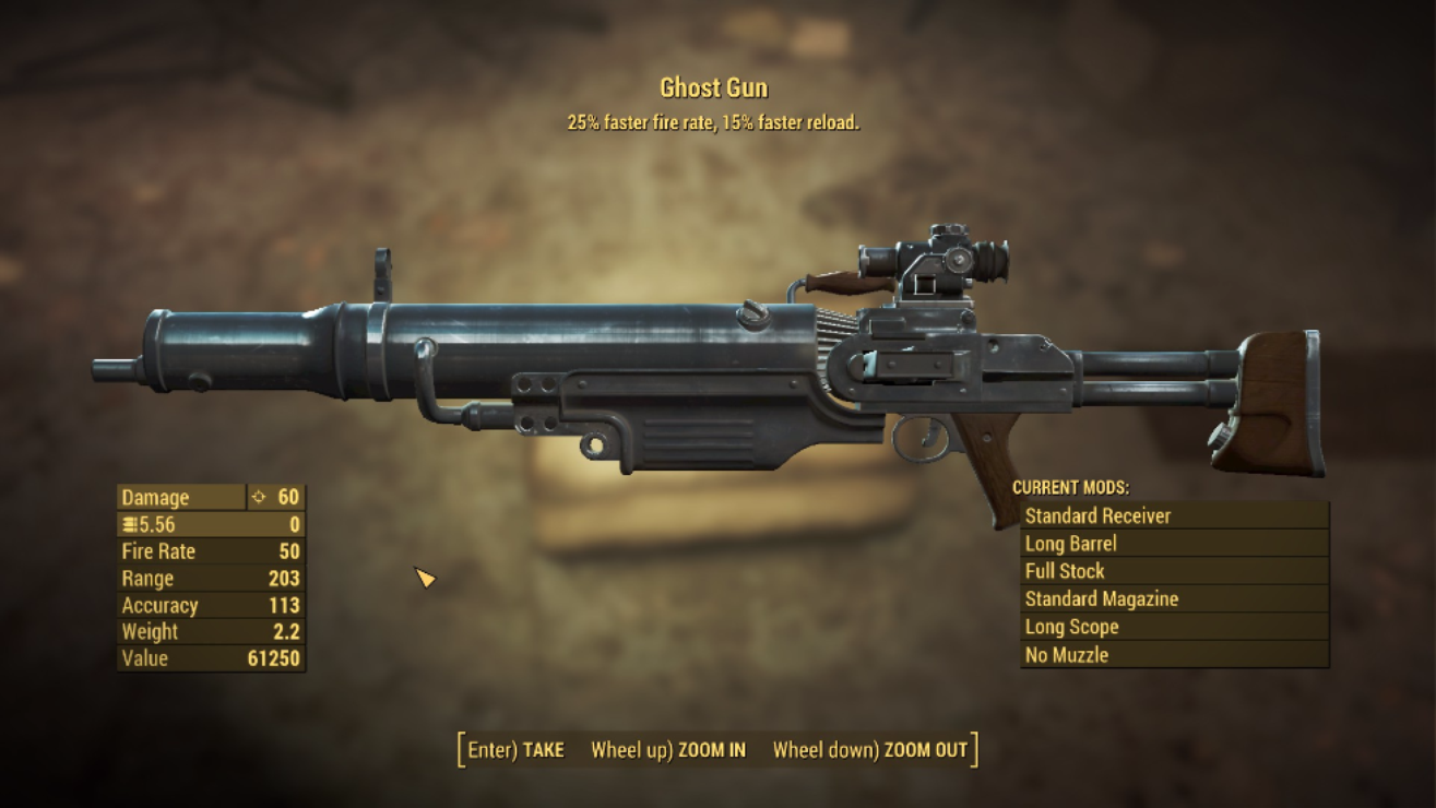 This mod places a mythic assault rifle in the Museum of Witchcraft. It does 50 base damaged compared to the usual 30. It also has the legendary rapid effect (25% faster fire rate, 15% faster reload). The magazine has a 900 round capacity so you probably won’t need to reload too much.