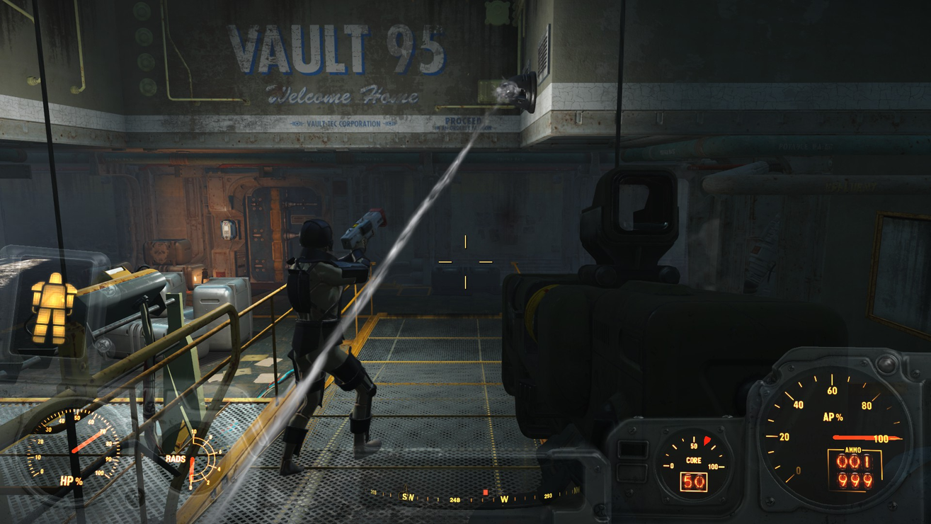 Squeeze the trigger and wherever the beam hits, a fully armed and armored Synth will relay in and fight for you, even if you’re not on friendly terms with the Institute. Shoot through windows, up on high places or snipe in a Synth from across a river or highway, the choice is yours.