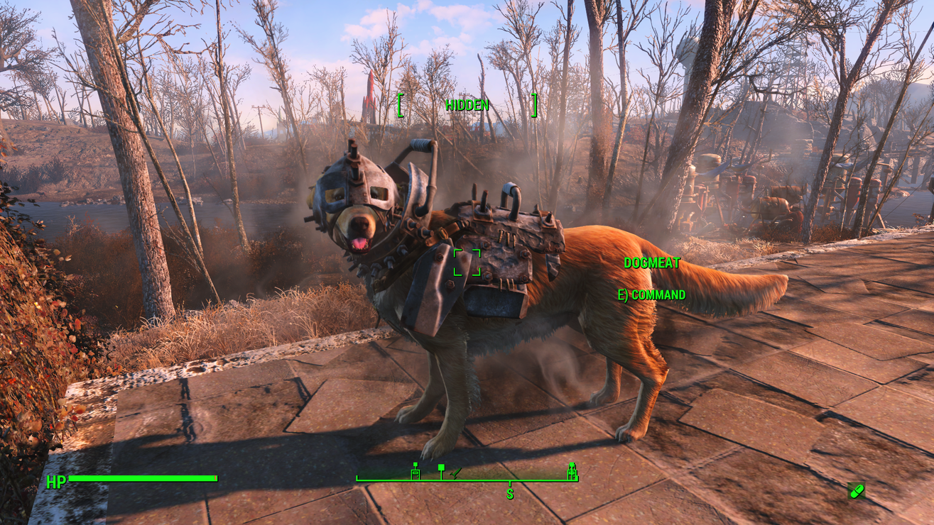 read this paragraph. but in short with effects fog plus great dane = invisible dogmeat most of the time (not always though and only the great dane its due to the scale up effect.)if you use my other dog skin mod you should know about it already use the vault tec population manager to find dogmeat and to get the collar off him (its in misc in power) but its from the vault tech dlc