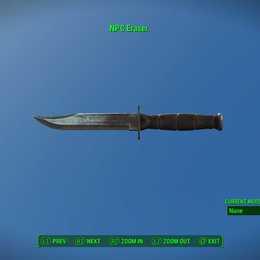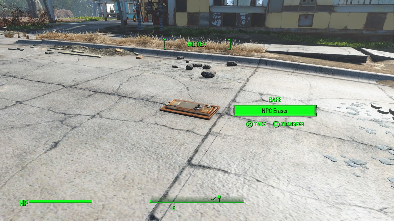 Found in a safe embedded directly into the street in Sanctuary, the NPC Eraser is a knife whose attack isn’t considered hostile by targets or witnesses, which does no damage, and which erases its target from existence after 1 second. You could use it to remove specific NPCs from the game, clean up the bodies of raiders and robots that have attempted attacks on your settlements, or depopulate entire towns for that eerie, “ghost town” feeling you’ve always wanted.