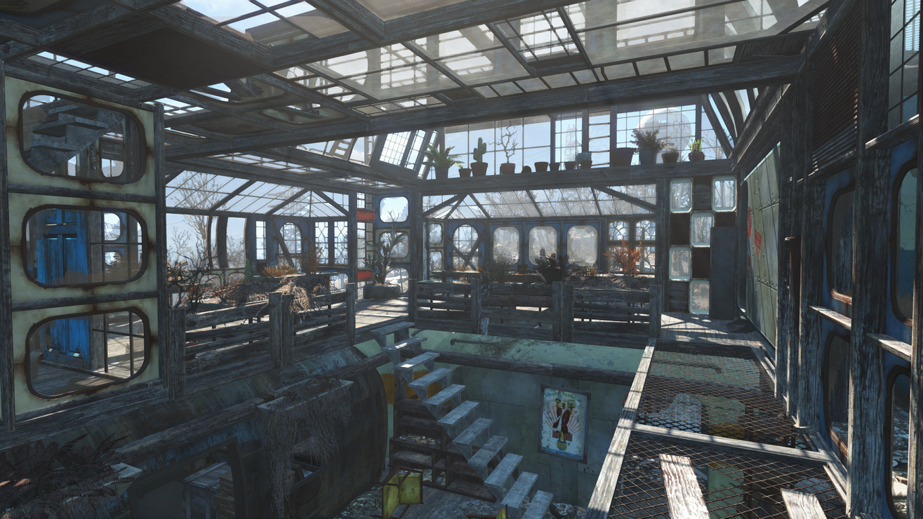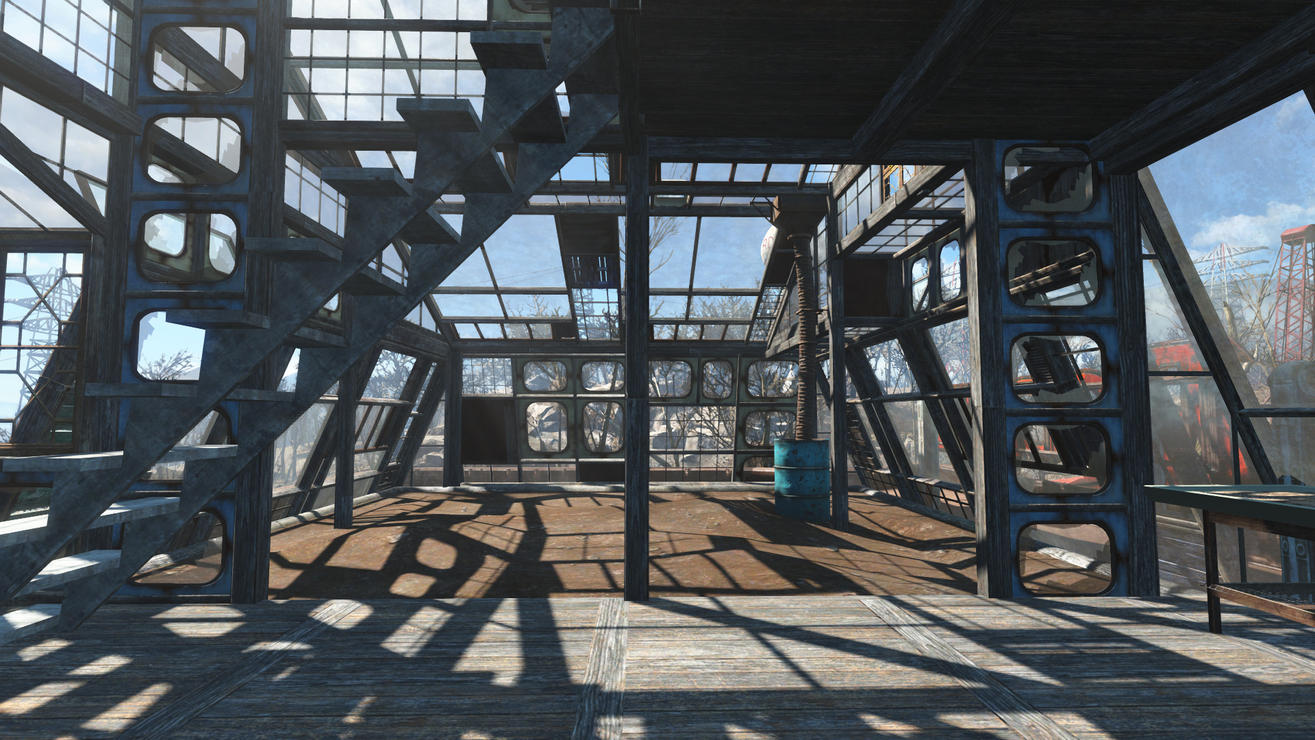 You’ll have access to a makeshift/salvaged windows greenhouse on top of the Red rocket. Inside you’ll find schematics to build more improvements. Each of those will require various materials.