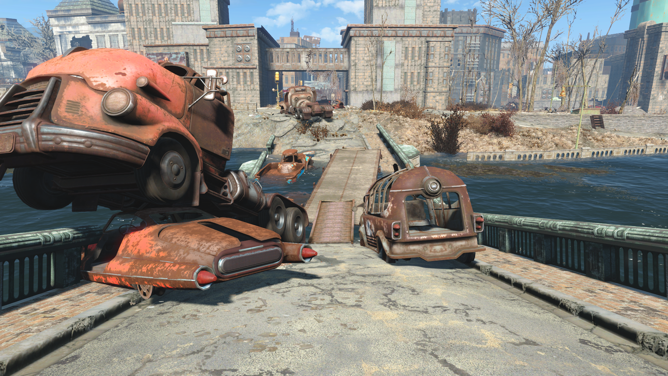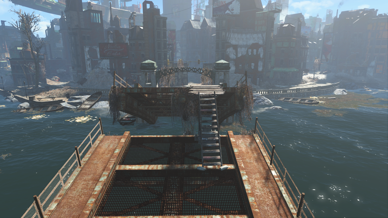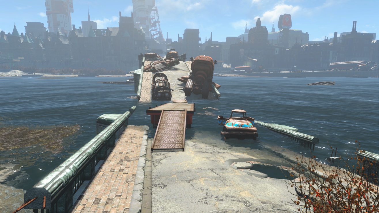 This adds a fully navmeshed shack style bridge to the gap of three bridges: at Gibson Pier Bridge, bridge near Egret Tours Marina, and the bridge near Cabot House. It also adds a bridge to get around the train car blocking the track near Beantown Brewery and a bridge to avoid falling through the highway holes on the bridge between CIT area and Backstreet Apparel. The CIT area bridge is fully tied into the CIT quest layers and will disappear after certain actions in the main quest line.