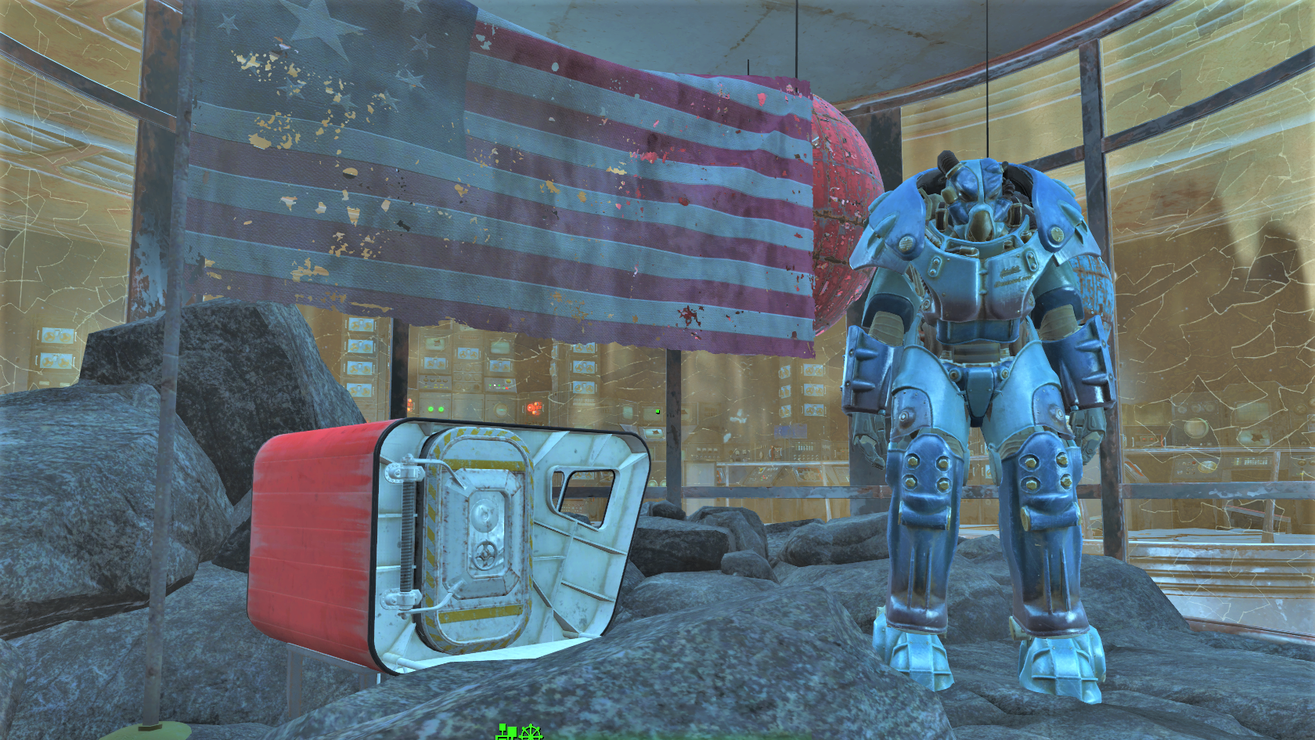 In the display case for X-01 Power Armor, you’ll notice a small little additon, probably a certain kind of moon lander.
