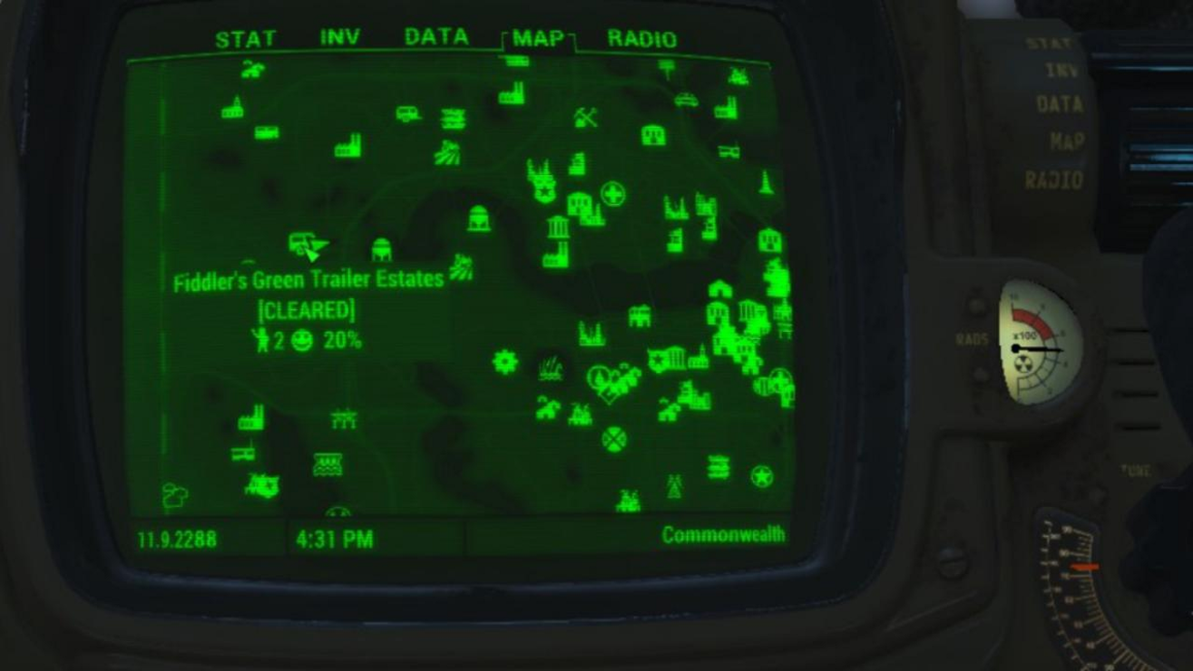 Creates a fully functional settlement at Fiddlers Green, a trailer park near Fort Hagen.