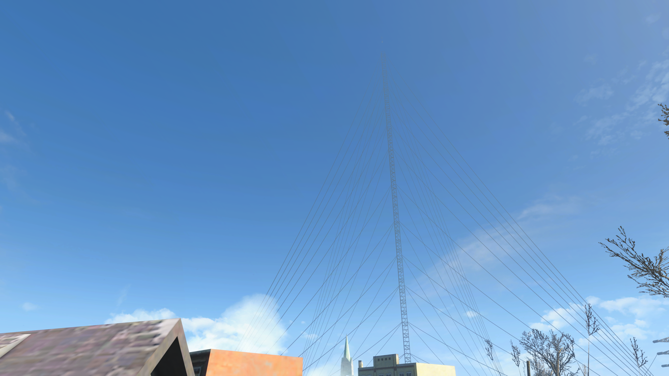 Based of the real world KRDK-TV mast and mostly, fits in with Fallout 4 lore and real-world lore, being there is a TV mast in Netwon, MA. Can be found west of Starlight Drive in, avoided placing in the glowng sea so you can admire the view from the top, can see the entire map.