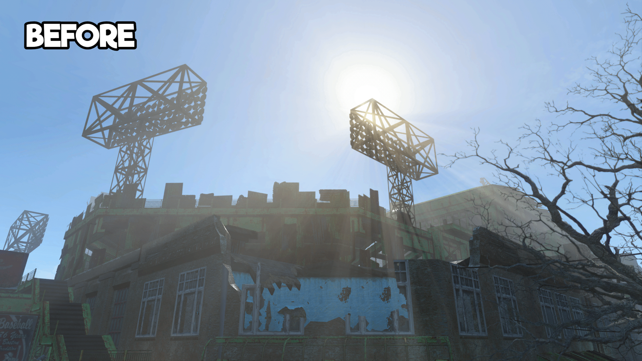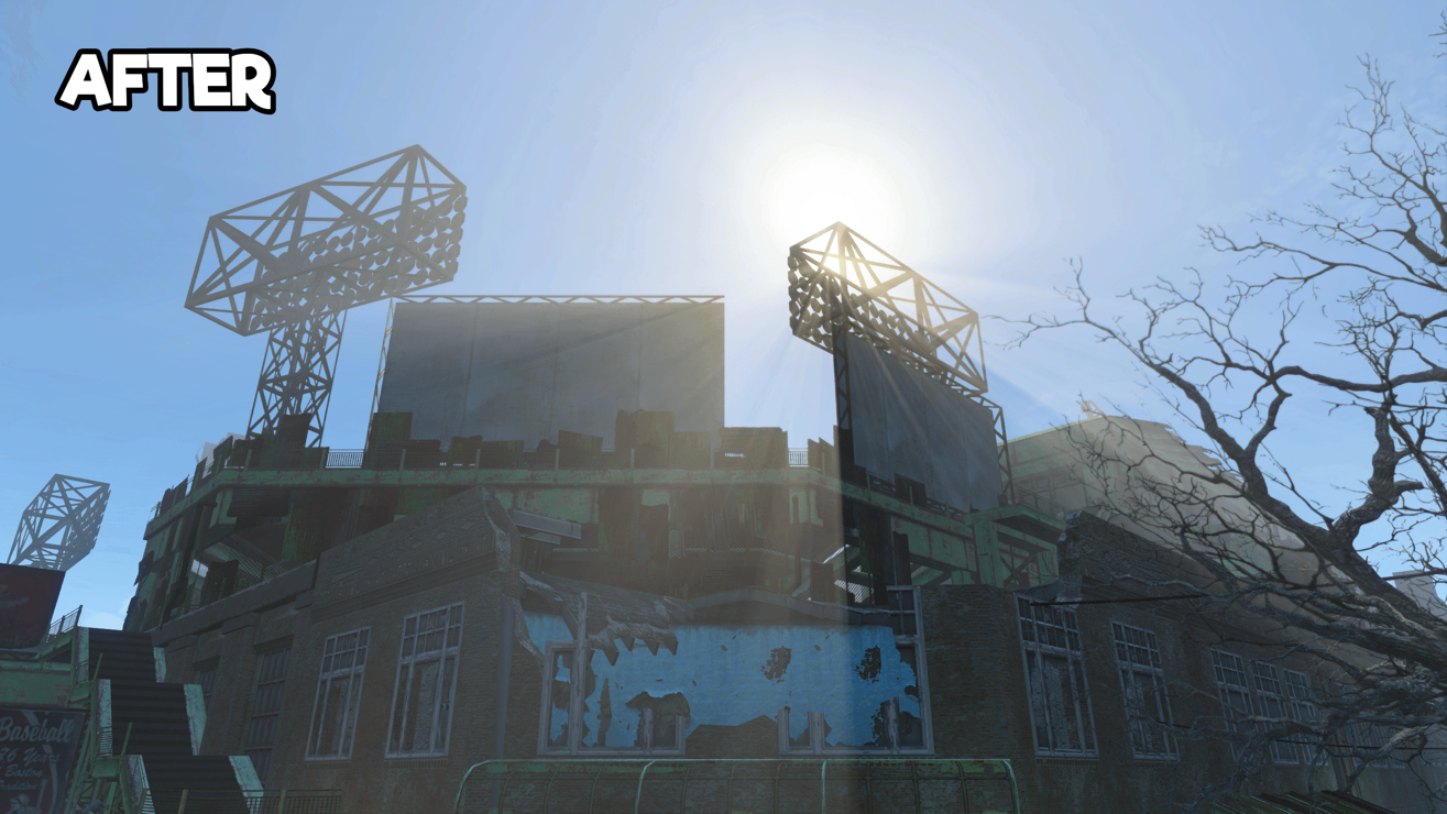 Diamond city has a lot of inconsistencies, between the inside and outside. It’s bigger on the inside, for one. The stadium itself is shaped differently, too. Heck, even the floodlights are placed in different spots. But have you ever noticed that all those ads facing the stadium seats only exist when you’re inside the city? That one, at least, can be fixed.