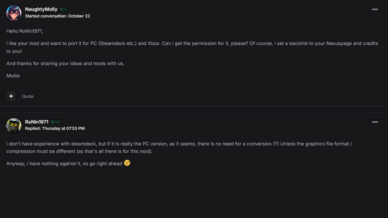 Credits to and thanks for permission: RoNin1971 - www.nexusmods.com