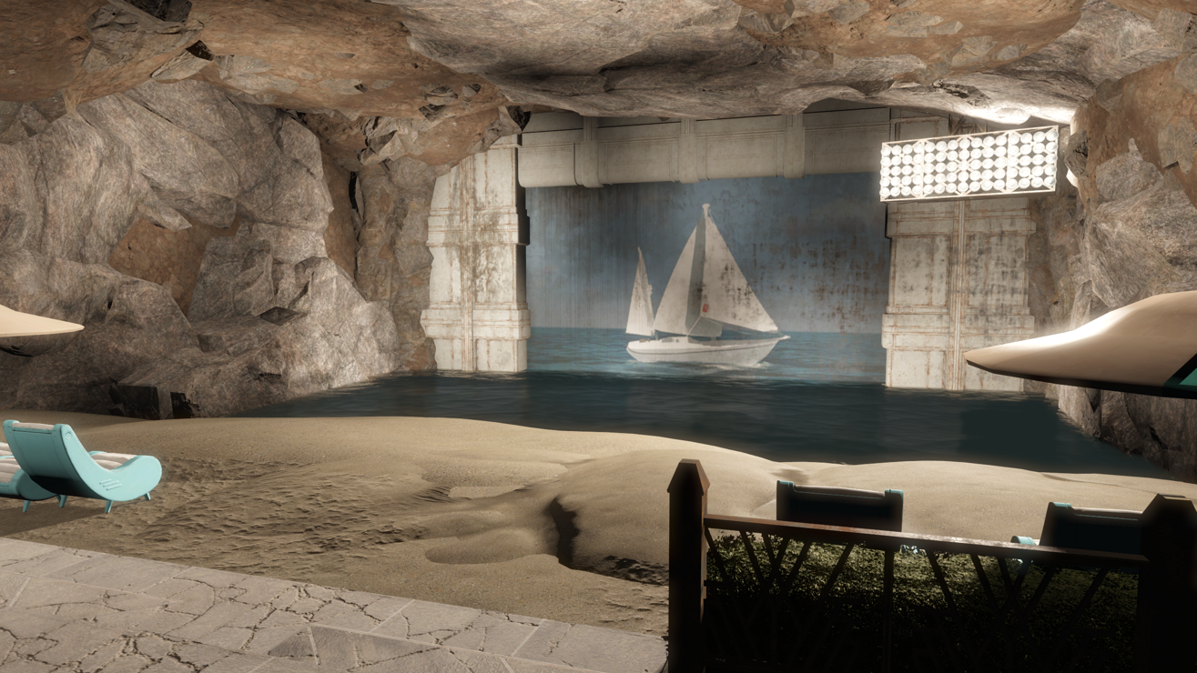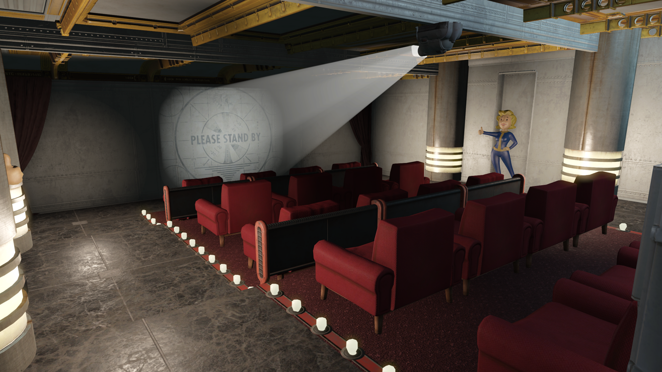 This mod features a huge, completely custom vault that has residential areas, a market, diner, movie theater, arcade, security wing, speakeasy, lounge, indoor beach, and so much more!