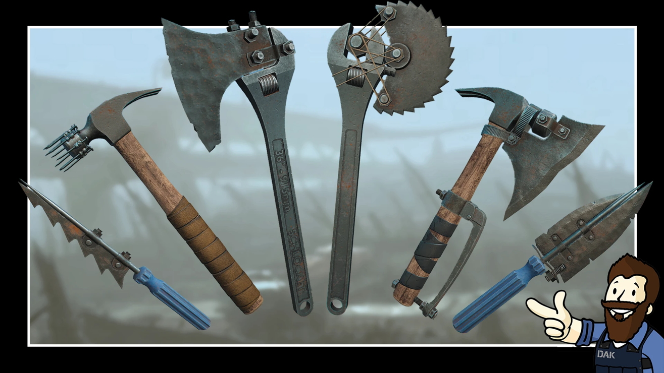 A brand new Claw Hammer, Screwdriver Shiv, and Heavy Wrench!