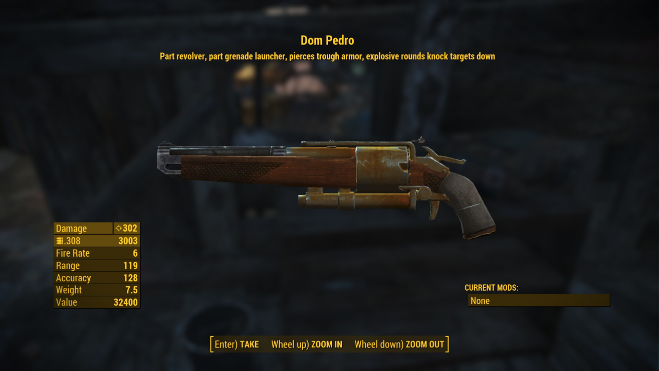 Adds the Ghouls Revolver from the TV show to Abernathy Farm, it cant be modified and has its own model and legendary effect, fires 45-70 so it requires far harbor